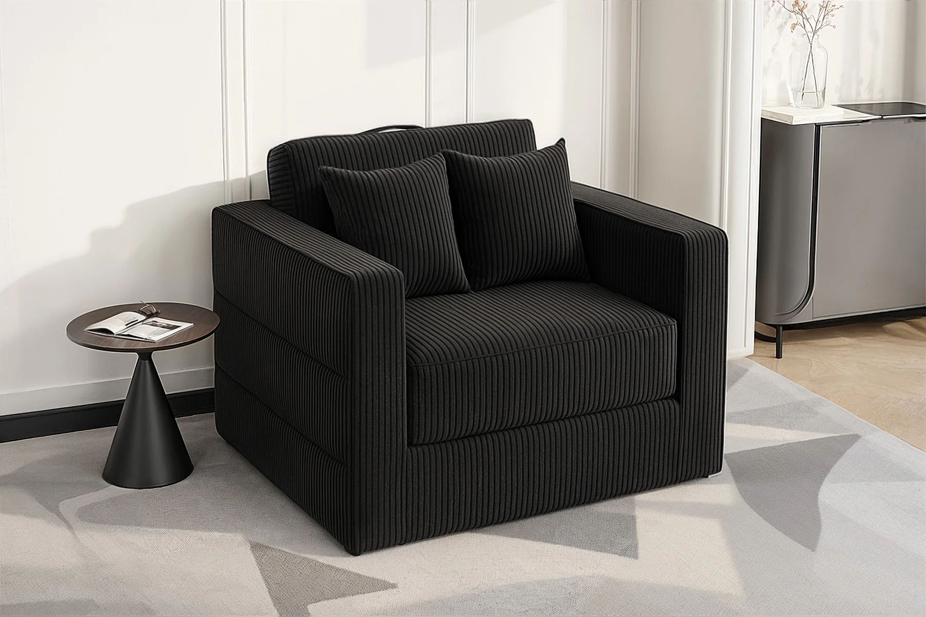 This sleeper sofa features deep, oversized seats with soft, durable corduroy fabric that's pet-friendly. The resilient SleepCore foam offers superior support for lasting comfort. It converts from couch to bed in seconds, easily adapting to your needs.
